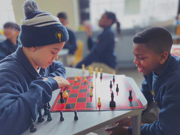 Creo College Prep students playing chess during their self-care day. Photo by Claude Solnik