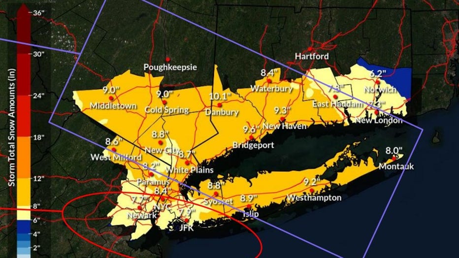 Other areas of New York closer to the lower Hudson Valley, including New York City, will see 7 to 11 inches of snow, with the potential for 12 inches.