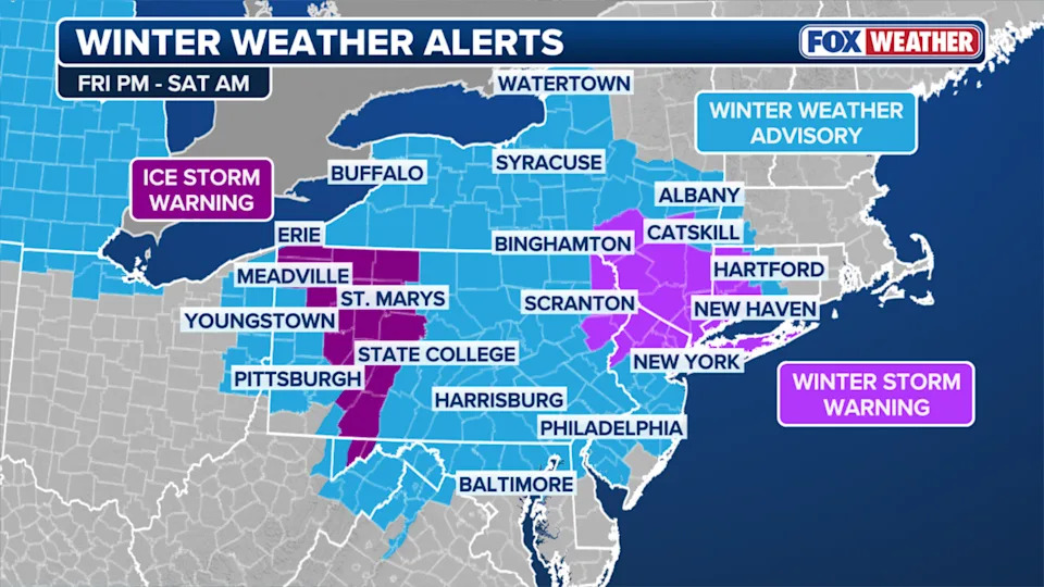 “As New Yorkers continue to celebrate the holidays and prepare to celebrate the new year, they should also prepare for hazardous travel conditions Friday into Saturday,” NYC Mayor Eric Adams said in a statement, adding that city agencies are coordinating and monitoring conditions closely.
