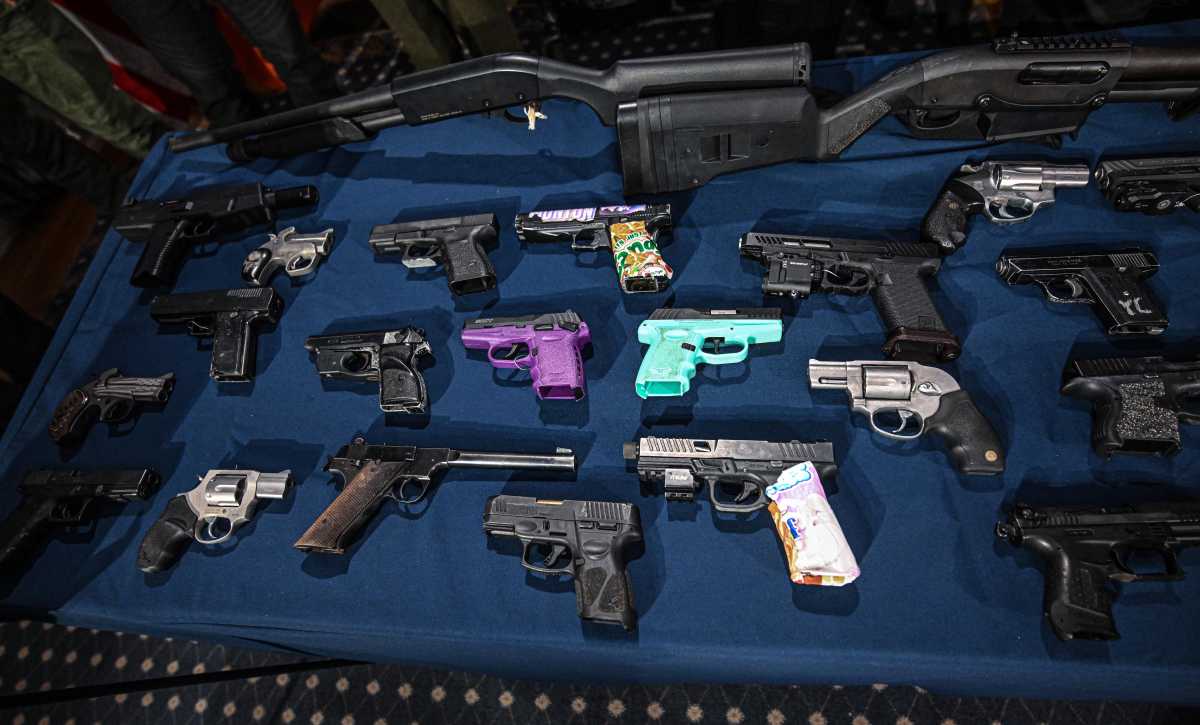 Adams stood inside City Hall beside Police Commissioner Jessica Tisch and a collection of confiscated firearms that included everything from handguns to shotguns. Hizzoner wasted little time patting himself on the back for what he cited as a major milestone in public safety.