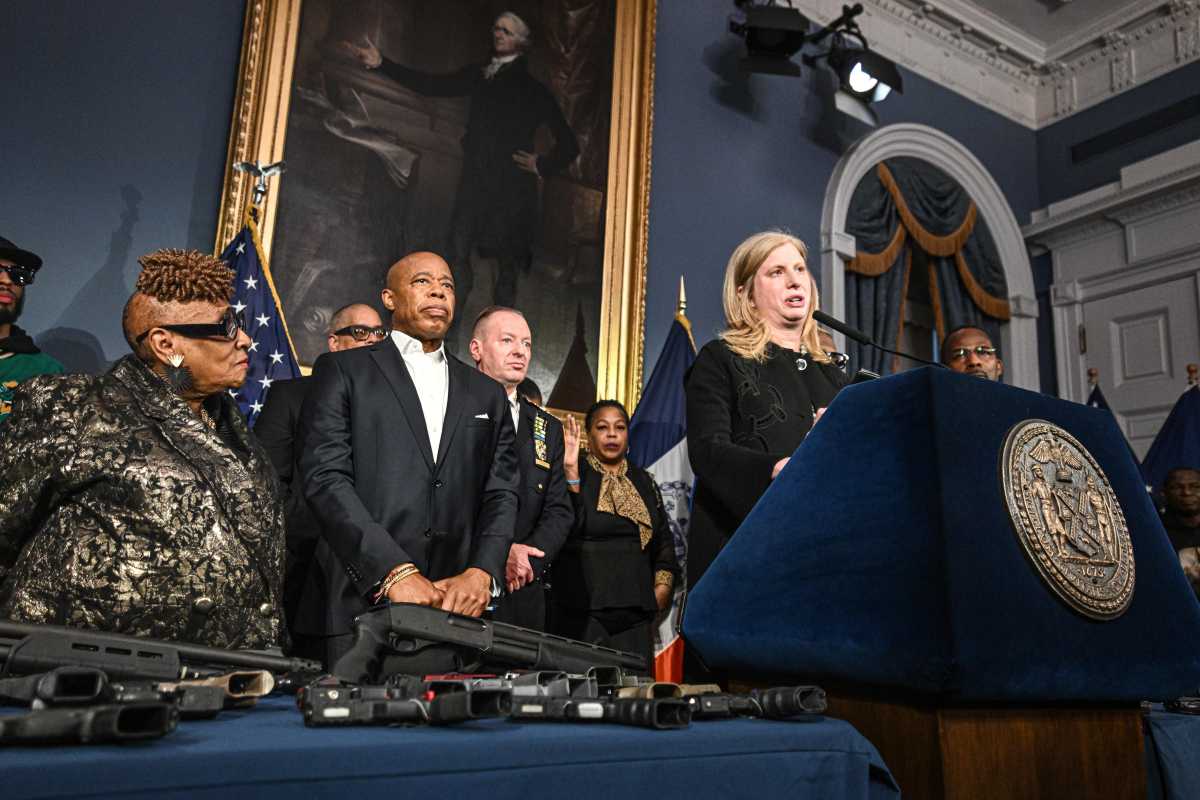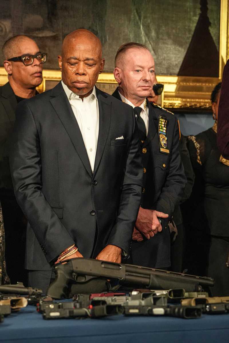 Outgoing Mayor Eric Adams looked to take one last victory lap Monday before handing the reins of the city over to Zohran Mamdani by announcing the removal of 25,000 illegal guns from the streets.Photo by Dean Moses