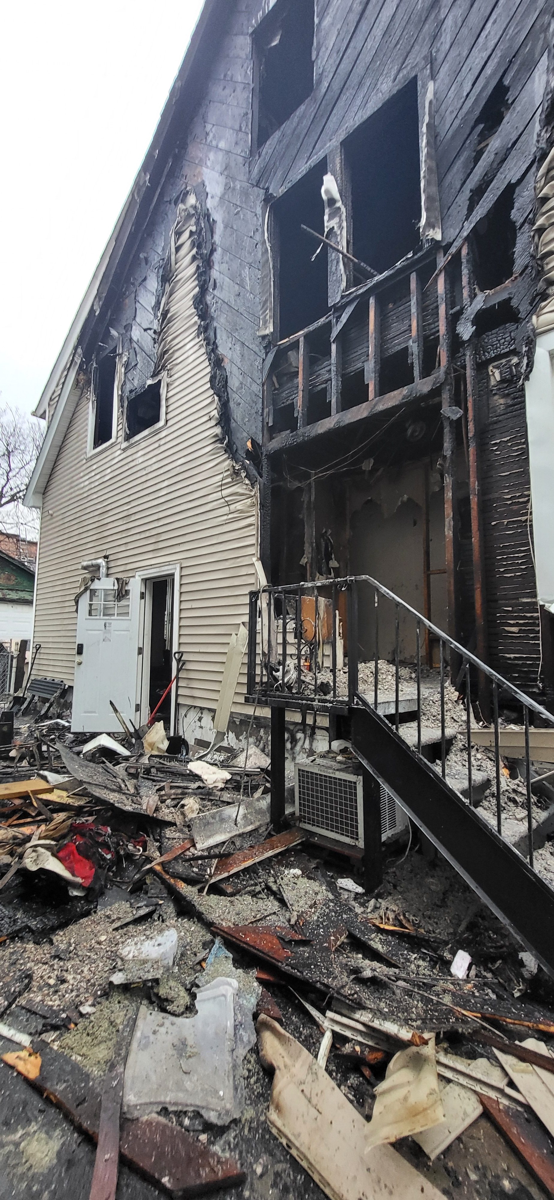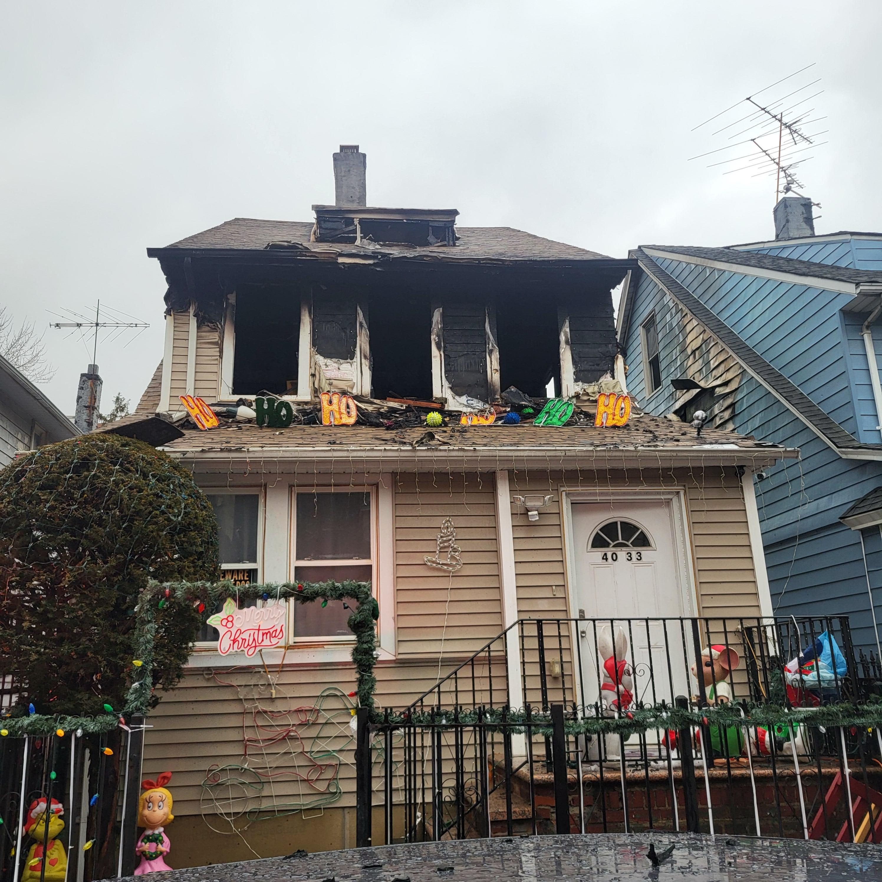 Inspectors from the city’s Department of Buildings were called to conduct a structural stability inspection of 40-33 Gleane St. and found extensive fire damage, including charred wood joists and a staircase on the second floor that had been rendered unusable by the fire. Some fire damage was also observed on the siding on 40-37 Gleane St. As a result, DOB issued a full vacate order to 40-33 Gleane St. and a partial vacate order to the driveway of 40-37 Gleane St.