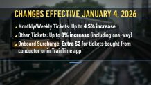 Starting this Sunday, the cost of a monthly or weekly ticket will increase by up to four-and-a-half percent. Other tickets, including one-way, will cost up to eight percent more.