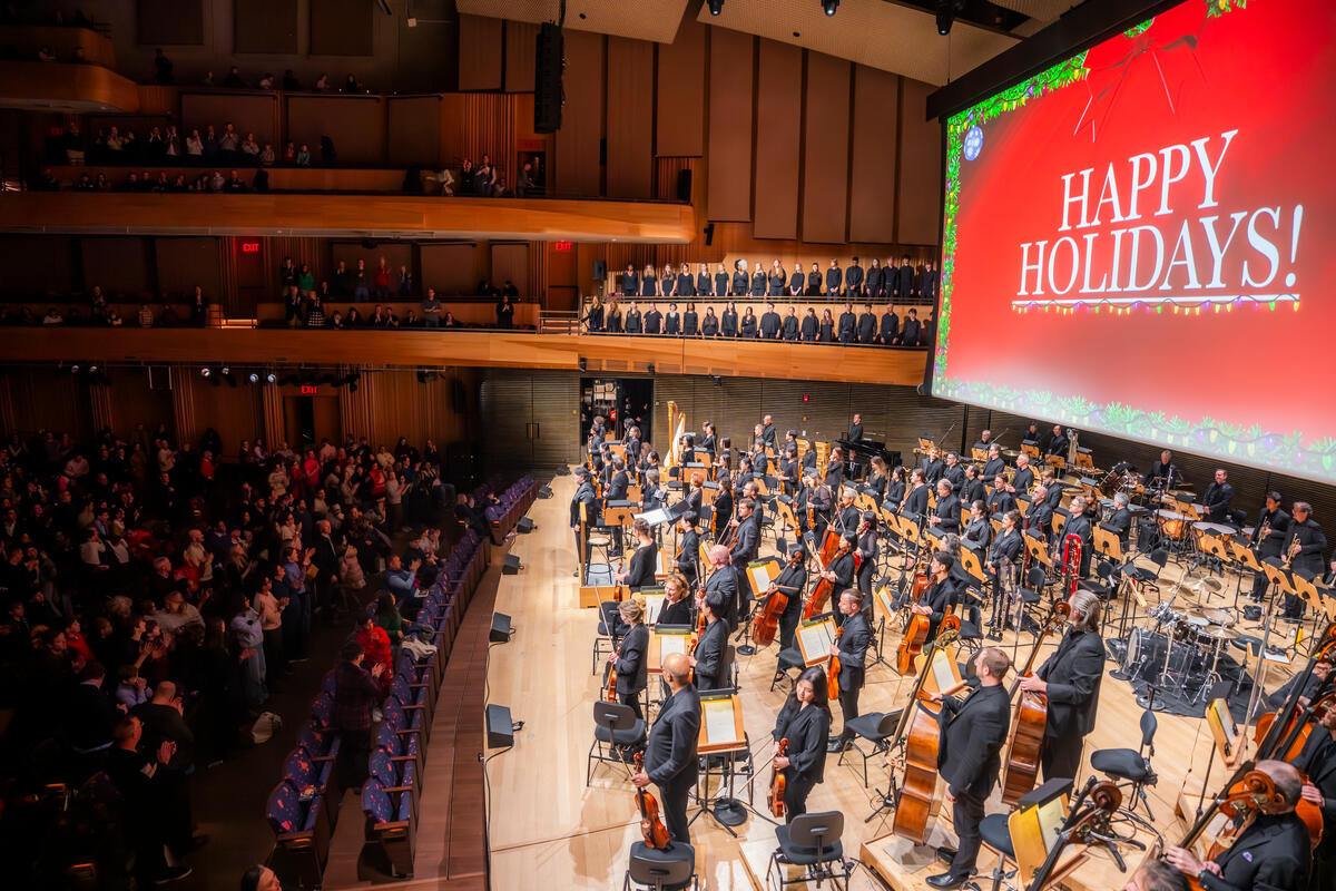 The New York Philharmonic Orchestra and members of Brooklyn Youth Chorus.