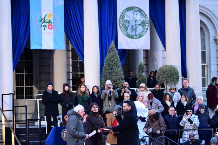 Vermont Senator Bernie Sanders swears in Mayor Zohran Mamdani.Photo by Lloyd Mitchell