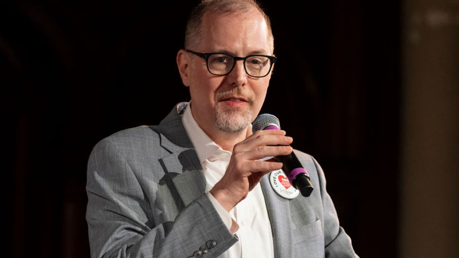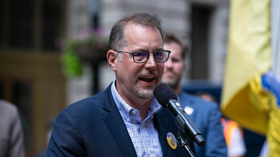 Manhattan Borough President Mark Levine speaks in Bowling Green Park in Manhattan, New York, on Aug. 23, 2022. Levine is the front-runner for the office of New York City comptroller. (Shawn Inglima/New York Daily News/Tribune News Service via Getty I