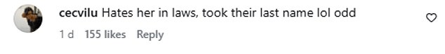 Others were harsher, writing: ‘Hates her in-laws. Took their last name, odd.’