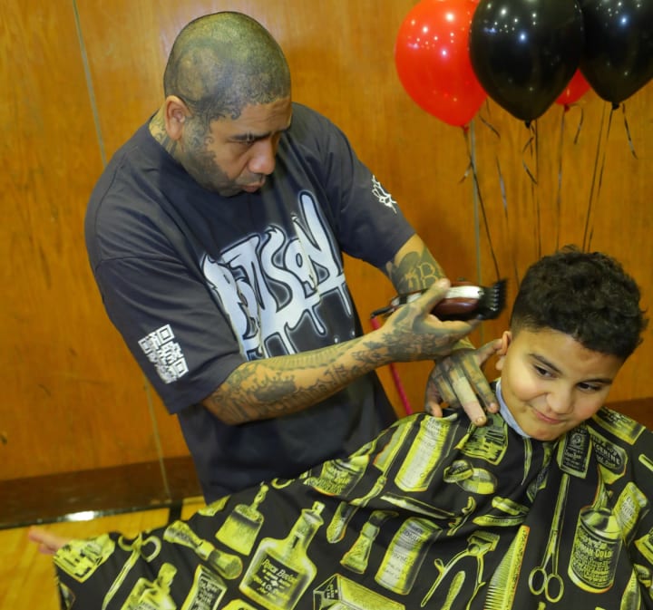 Fresh cuts and real smiles at Poiison’s Queens holiday giveback. Photo By Derrick Whiting