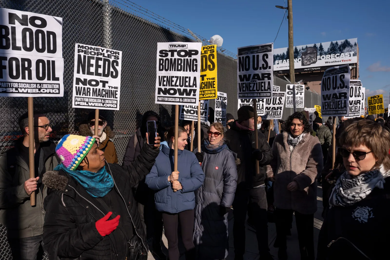 ANSWER Coalition: “This Trump administration has committed an outrageous new act of war — attacking Venezuela and kidnapping the country’s president. This is another criminal act by Trump. He has murdered fishermen, stolen tankers full of oil, and has now invaded Venezuela and kidnapped the country’s head of state.”