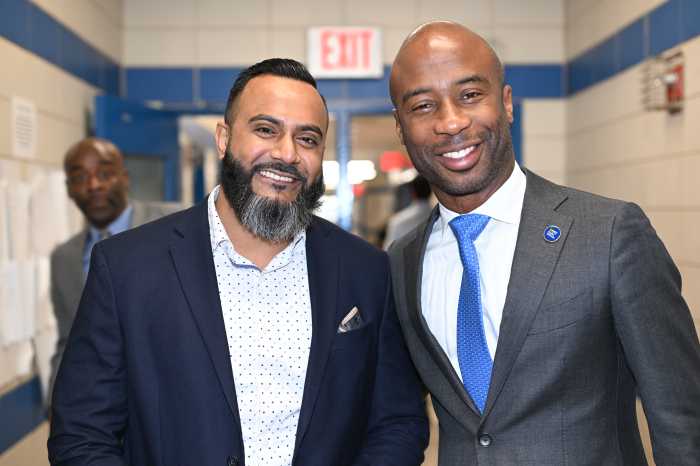New York City Schools Chancellor Kamar Samuels with his former student Abdulla Mumen, who is now an Assistant Director of Finance at Montefiore Health System. Photo by Ramy Mahmoud