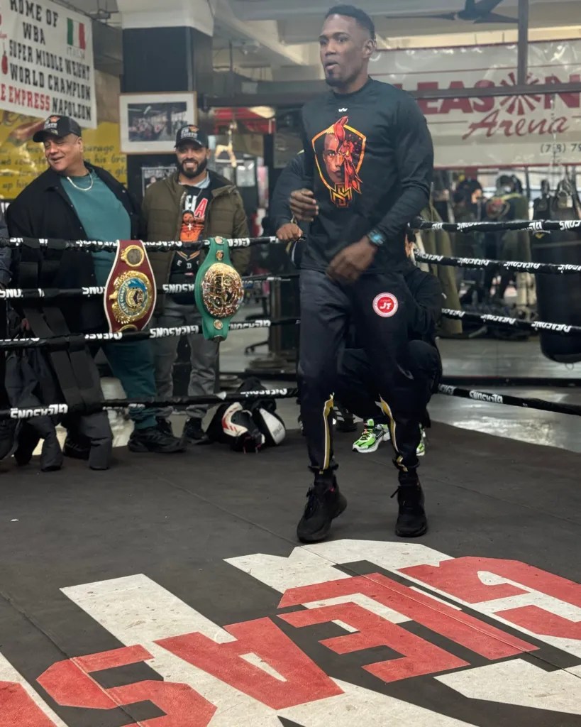 If the tussles were placed in, say, San Juan, it would have been a sunny 80 outside for the stalking slugger. Nope; winter in NYC is the climate for the slight under-the-radar tiff. “No better place to be than in New York to win my first title,” said a confident-seeming Smith to the videography crew in the gym. “We’re here to shock the world,” he asserted, saying that bringing in tough Russians to spar will pay dividends: “Believe it or not, this is the calmest I’ve even been for a fight, don’t know why, mentally and physically it’s meant to be.” Sounds like he is feeling 100 percent three days out. He insists that he is on this level and that will be evidenced on Saturday. He grinned easily when I asked his prediction for Saturday: “And the new!”
