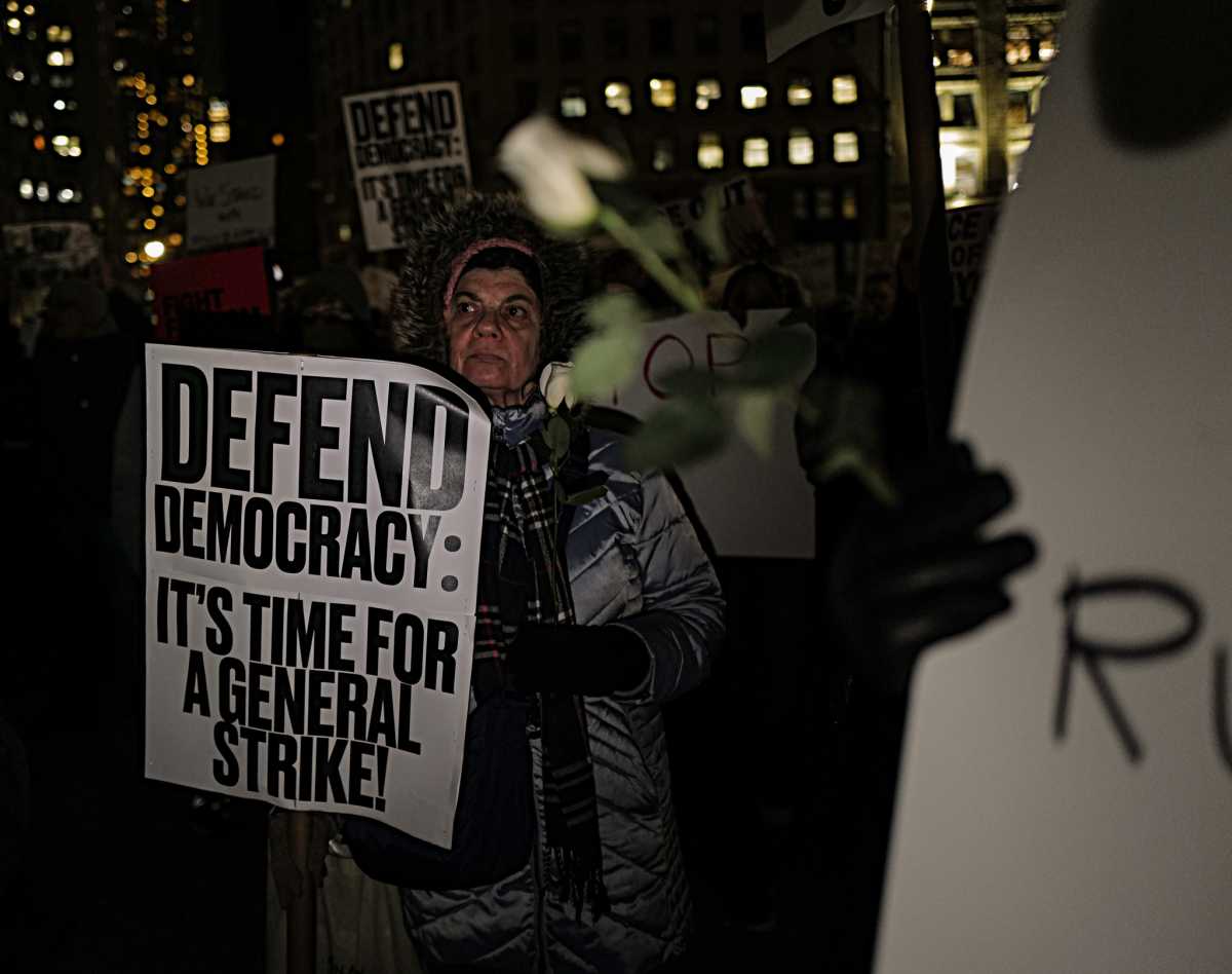 Hundreds of fuming New Yorkers took to the streets of Lower Manhattan on Wednesday night to protest the ICE shooting death of a mother in Minneapolis.Photo by Dean Moses