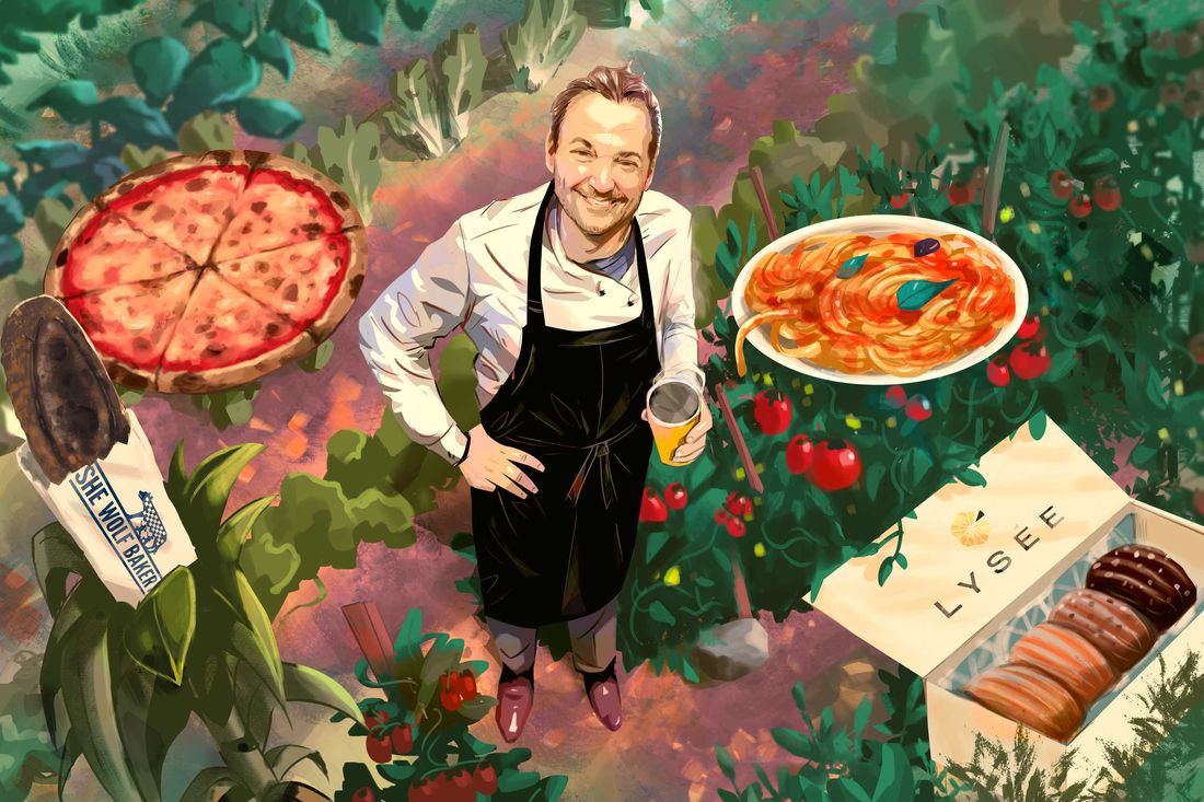 “When I moved to New York, I never thought that I would have only one job,” says Daniel Humm. The Switzerland-born chef arrived in 2006 to run the kitchen at Eleven Madison Park, which he bought from Danny Meyer in 2011 and where he’s been the sole owner since 2019. “It turned out to be this magical place that’s bigger than me, and it has defined my whole culinary career,” he says. During his time, EMP has become one of the most prominent restaurants in the world. It was global news when Humm announced in 2021 that the restaurant would serve only plant-based ingredients, just as it was last year when he announced that meat would return to the menu. Now, to mark his 20th anniversary there, the restaurant is staging a 20-day retrospective menu of its greatest hits, including carrot tartare, a clambake, and celery root cooked in pig’s bladder. Mostly but never fully vegetarian himself, he admits that when he dreams of meat, it’s the flavors of his childhood: “My mom would make these incredible osso bucos. Those are the things that I am drawn to most.”