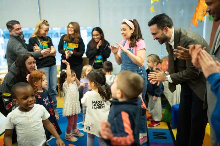 The mayor started his day visiting children at District 2 3K/Pre-K Center in Manhattan alongside YouTube star Ms. Rachel. Photo by Michael Appleton/Mayoral Photography Office