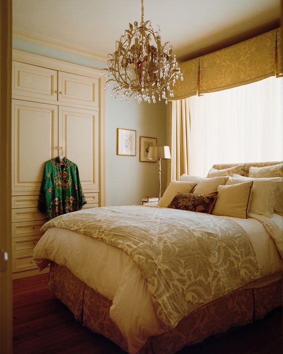 The Bedroom “The chandelier was left in the apartment,” Liotus says. “I added the two antiques cherubs I found at an antiques shop in Pittsburgh.” The duvet cover was custom designed.