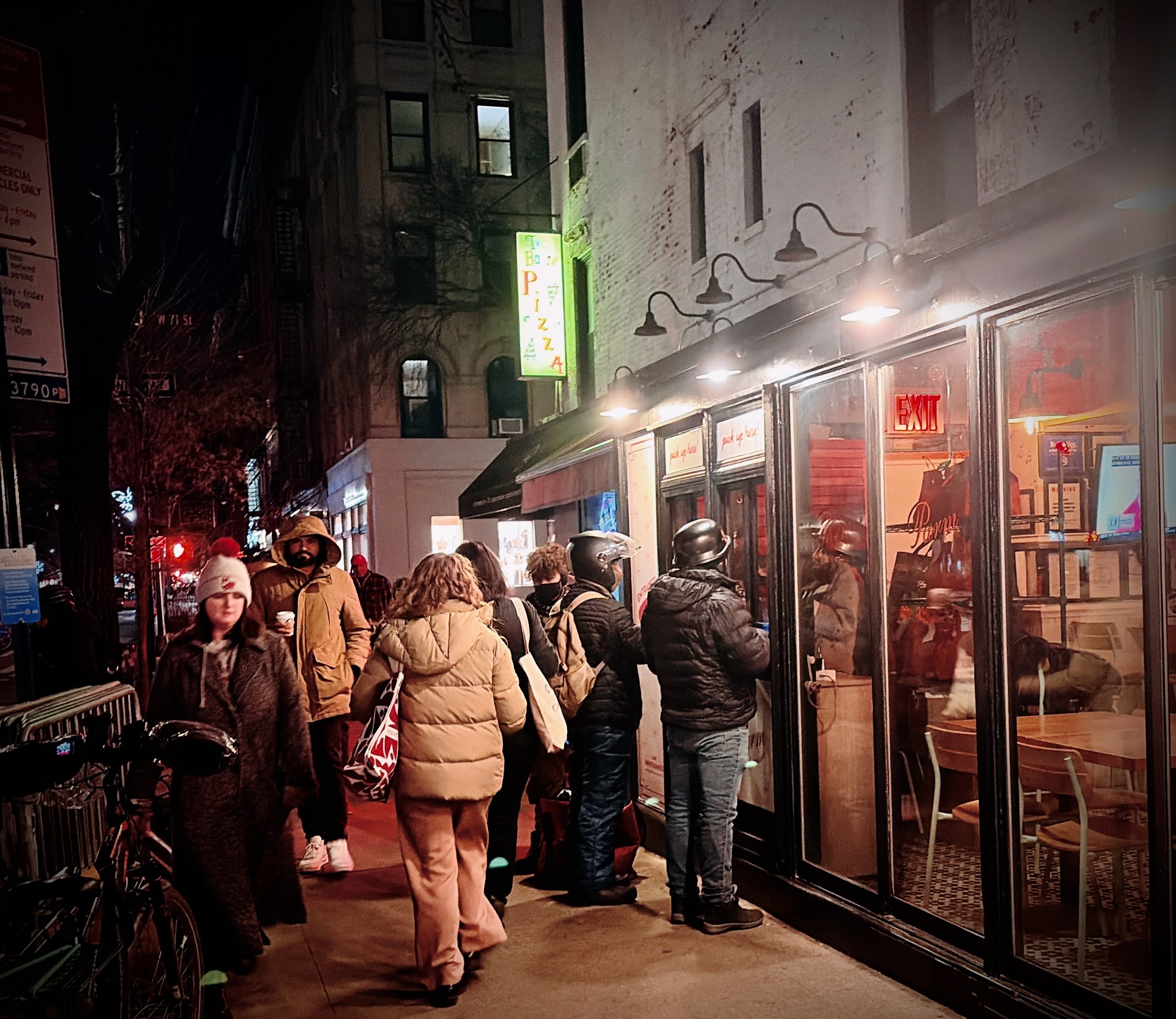 But then I took a breath and stepped outside. And sure enough, in a single day, I saw an unhoused Upper West Sider building a shelter out of four discarded Christmas trees in Central Park. I saw a couple making out in front of Gray’s Papaya (that smell is seductive). And I saw a woman losing it, trying to make it past the perpetually crowd-clogged takeout window at Parm on Columbus. She had every reason to—no polite “excuse me” will ever get you through the hungry, the excited, and the delivery workers with their helmet-covered ears.