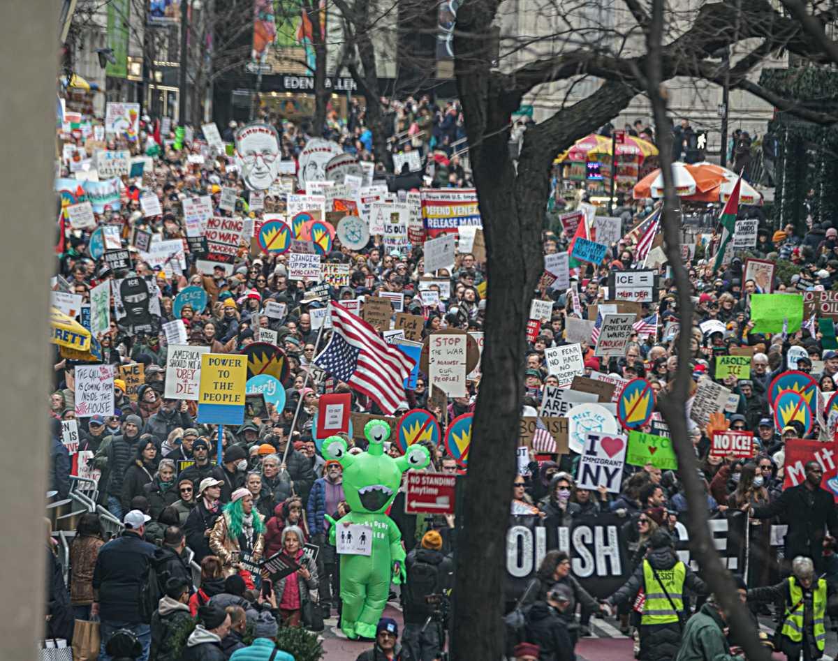 The enormous and peaceful demonstration assembled on 60th Street and 5th Avenue at around 1 p.m. and served as the largest to hit New York since the killing of Renne Good.Photo by Dean Moses