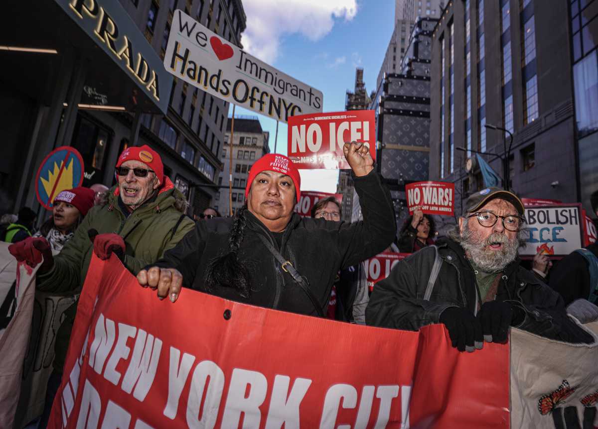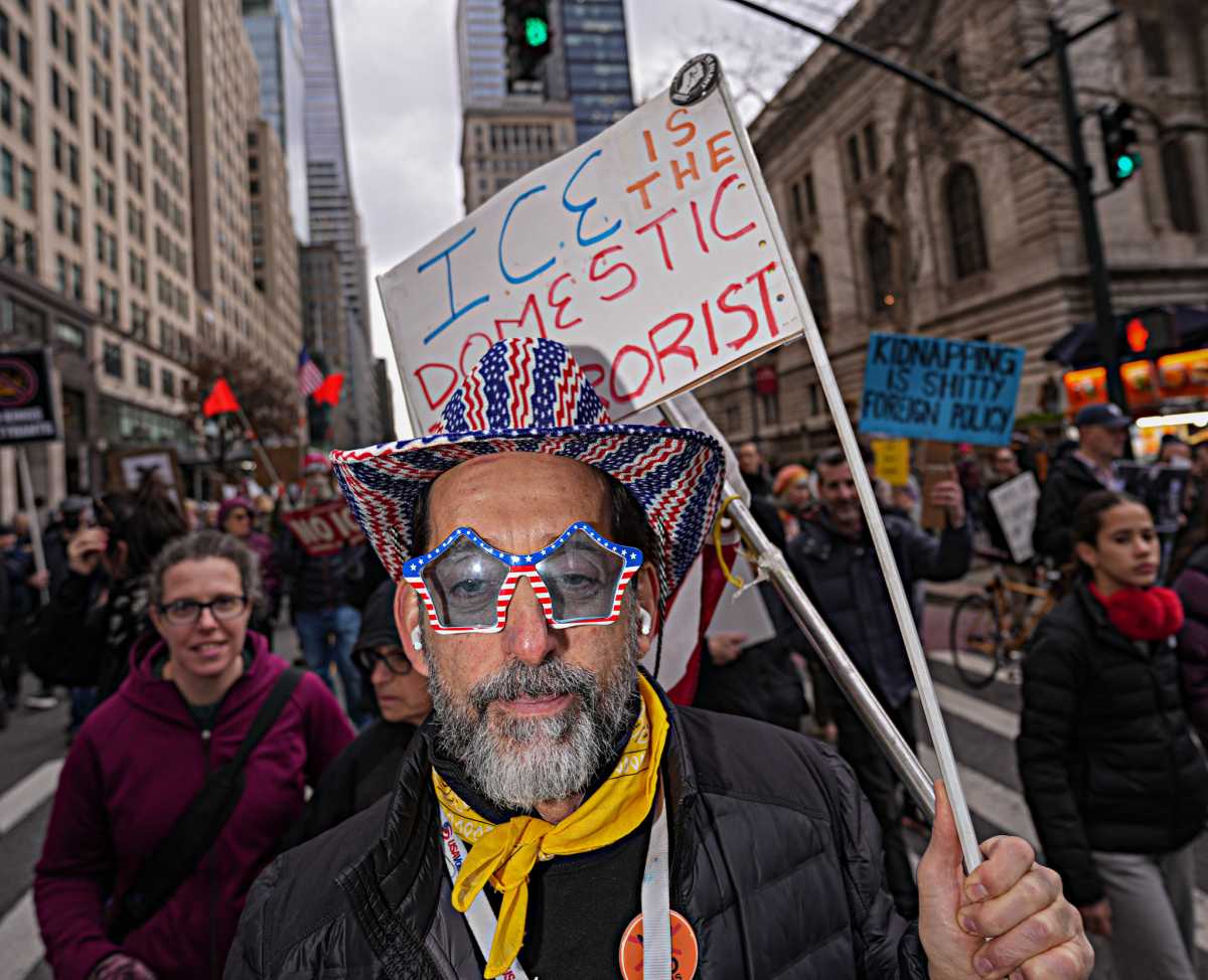 Thousands marched through Midtown Manhattan on Sunday in a massive show of defiance against President Trump’s ongoing ICE enforcement in America.