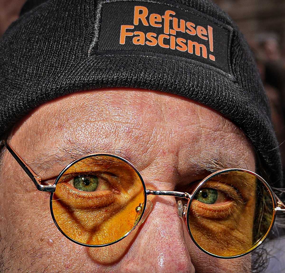 Carrying homemade signs, playing musical instruments, and even carrying the star spangled banner upside down, the vast crowd demanded that masked Federal agents immediately stop patrolling the streets while calling for the ICE officer who gunned down good to be held accountable.Photo by Dean Moses
