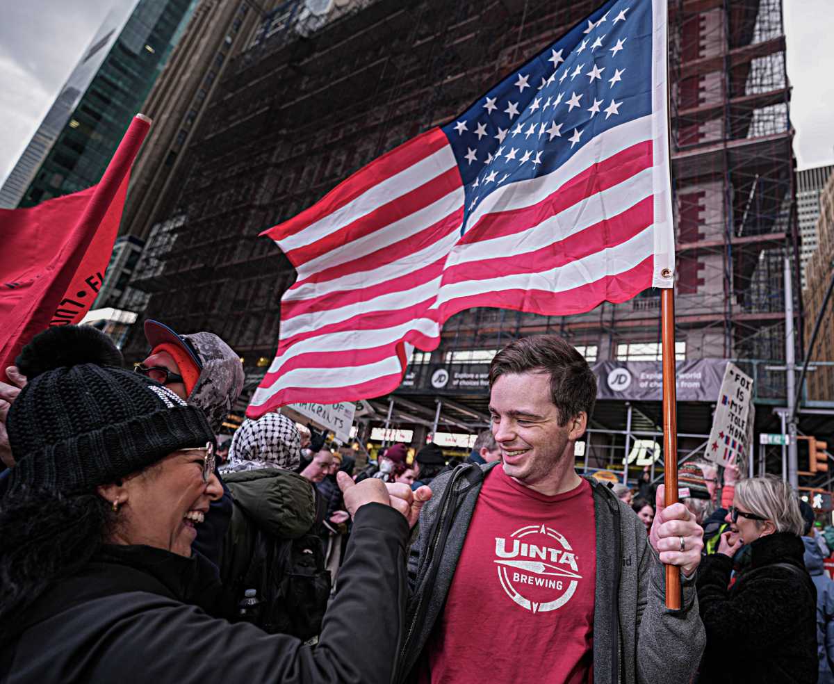 The throng of people then slowly headed down to the New York Public Library, where they turned right on 42nd Street and headed to Times Square.