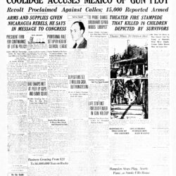 ON THIS DAY IN 1927, the Eagle reported, “WASHINGTON (AP) — Latin America and Mexico are conceived as ‘a base’ for Communist ‘activity’ against the United States, Secretary Kellogg said today in a document submitted to the Senate Foreign Relations Committee and made public by Chairman Borah. ‘The Bolshevik leaders have had very definite ideas with respect to the role which Mexico and Latin America are to play in their general program of world revolution,’ the document said. ‘They have set up as one of their fundamental tasks the destruction of what they term American imperialism as a necessary prerequisite to the successful development of the international revolutionary movement in the world.’ Secretary Kellogg quoted a resolution of the Third International setting up as one of the purposes of that organization the task of uniting ‘the national struggle against American imperialism in individual countries in a general movement on a scale of the whole American continent, embracing the workers of all countries of Latin America and the revolutionary forces of the United States.’ ‘Mexico is a natural connecting link between the movement of the United States of North America and Latin America,’ the cited resolution continued. ‘Therefore, Mexico must be the center of the Union.’”