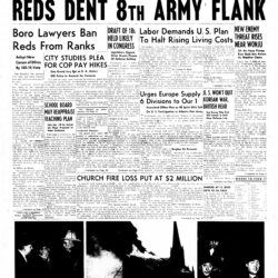 ON THIS DAY IN 1946, the Eagle reported, “The Army Ground Forces, starring the 82nd Airborne Division commanded by Brooklyn-born Maj. Gen. James M. Gavin, today gives New York its biggest show since General Pershing came home from World War I in 1919. The Weather Bureau predicted the rain would stop by noon, with partly cloudy skies favoring the thousands of persons who will line 5th Ave., Manhattan, for the four-mile parade. Other thousands this morning took up positions along 4th Ave. and Flatbush Ave. in Brooklyn to watch mobile guns, tanks and other equipment move from the Brooklyn Army Base to the parade gathering point at Washington Square. The 82nd, billed as a representative division of the ground forces, will head the parade, but units of the 13th Airborne, 17th and 101st Divisions also will be among the 13,000 men in the line of march. Army officials estimated the parade would take an hour and a half to pass any given point. The long line of mobile equipment — 105 mm. guns, jeeps, tanks, half-tracks, command cars and other war vehicles — was to leave the army base, 58th St. and 1st Ave., at 10 a.m. and proceed to downtown Brooklyn and across the Manhattan Bridge. The bridge was to be closed to all other traffic from 10:15 to 11:30 a.m., and again from 4 to 5:15 p.m., when the vehicles come back after the parade. An overhead cover of 100 fighter planes and 50 transports, each of the latter pulling a glider, was scheduled to roar over Washington Square at 1 p.m. to signal the start of the parade.”