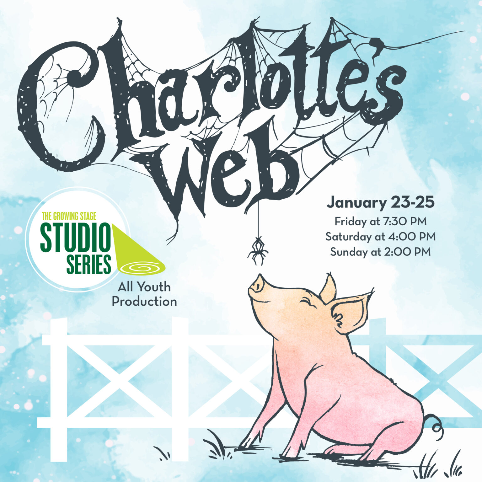 The Growing Stage’s Studio Series presents an all youth production of “Charlotte’s Web”