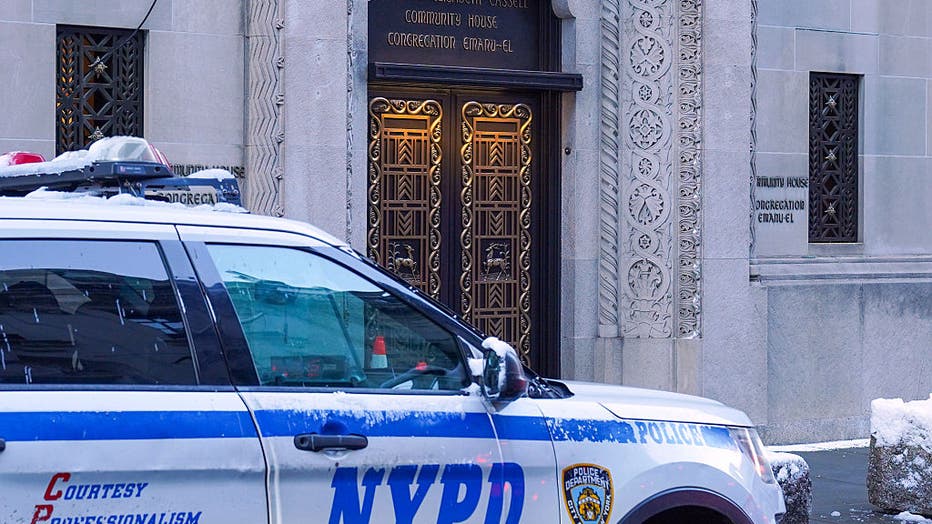 NEW YORK, NEW YORK – DECEMBER 14: An NYPD vehicle is seen outside of the Congregation Temple Emanu-El, a Jewish synagogue, on December 14, 2025 in New York City. New York’s Jewish community is reacting to the Bondi Beach terror attack that reportedly