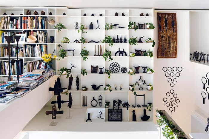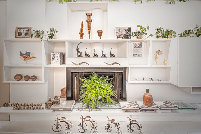 Beyond the design of the house, the stuff of Rudolph’s life is displayed throughout. The Modulightor is not one of those pristine modernist residences that lack any signs that a human might have resided there. On the living-room bookshelves, there is a model of Corbusier’s Open Hand monument in Chandigarh — a gift from the man himself. Nearby, there’s a maquette of an unrealized Picasso sculpture. A terra-cotta panel from Louis Sullivan’s demolished Schiller Theater in Chicago stands in a rear window. There’s even a Richard Serra painting that Rudolph salvaged from the trash in New Haven. But beyond the architectural artifacts and artwork, the duplex is jammed with eclectic objects, from statuary and ceramics from around the world to boomerangs, cigar molds, and shoe forms. There’s also a wall full of Voltron figurines that Rudolph bought in a moment of delight in Mexico City — then hand-painted. The duplex features a few tables that he designed; also, you can try out his surprisingly comfortable Lucite and tubular-steel chairs.
