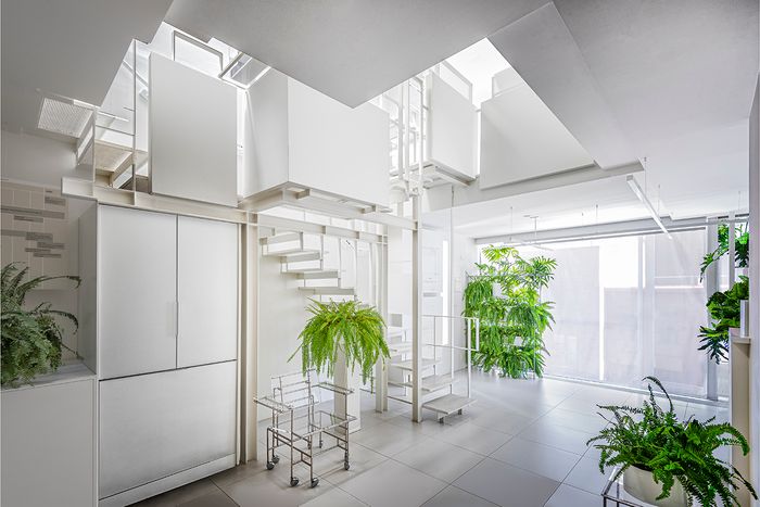 As a calling card, the Modulightor Building’s façade of irregular I-beams stands out next to its more conventional neighbors. It solves the classic New York rowhouse dilemma of windows being impossible to place anywhere but at the front and back by dedicating nearly all façade space to them. But it’s inside where Rudolph’s design philosophy really shines; instead of the typical open-plan solution, where nearly nothing is going on inside except an expansive floor plate, it’s an Escheresque space full of corners and partial levels that provide vistas up, down, and through the duplex.