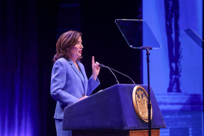 Gov. Hochul delivering her “State of the State” speech in Albany on Tuesday.Mike Groll/Office of Governor Kathy Hochul