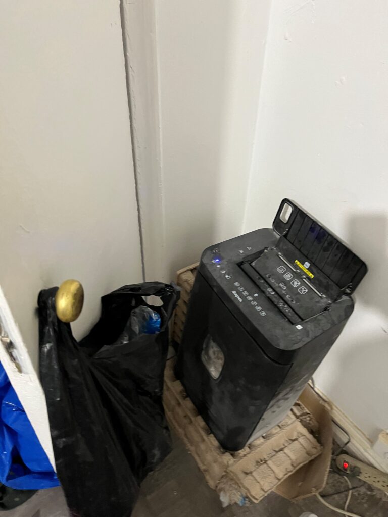 A PAPER SHREDDER seen by law enforcement inside 1505 Grand Concourse, Apartment 3B in the Mt. Eden section of The Bronx on Thursday, Jan. 8, 2026