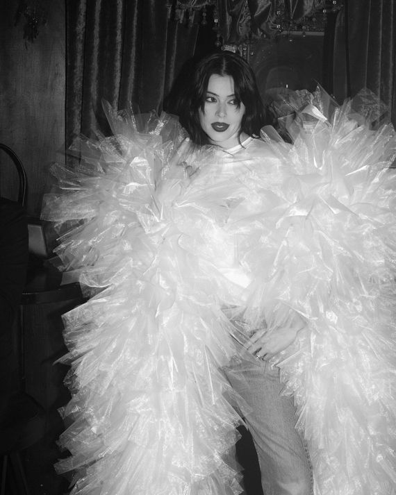 Thirteen feet long, worn for a wedding. Made by New York drag queen Milk, who describes it as “draped in eleganza.” Submitted by Lauren Chan, model.