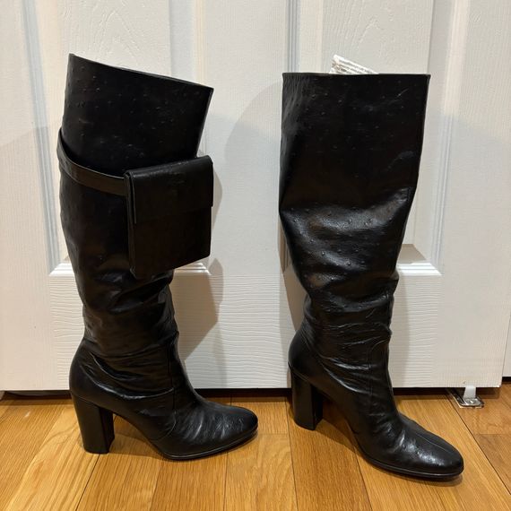 Size 39 boots from now-defunct Danish “It”-girl brand Saks Potts. Pocket on shaft is ideal for carrying lipstick to parties. Submitted by Sarah Isenberg, art historian.