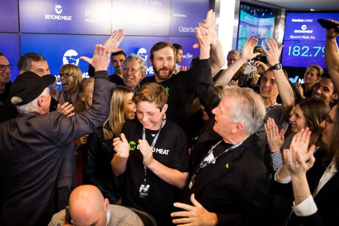 From top: The day of Beyond Meat’s IPO in 2018. It was valued at $3.8 billion. Photo: Michael Nagle/BloombergLizzo eating vegan chicken wings on Hot O… more