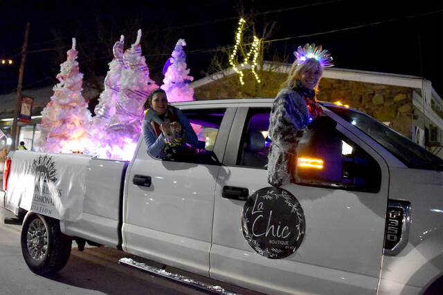 A La Chic Boutique float drives along South State Street in the Clarks Summit Festival of Ice Parade on Friday evening.