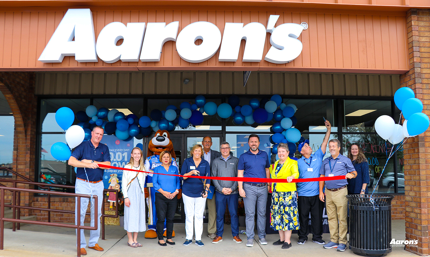 The celebration drew approximately 30 attendees, including members of Aaron’s corporate leadership and local dignitaries. Representing The Aaron’s Company were Steve Olsen, President; Julie Schmidt-Scott, Vice President of Franchise Operations; Michael Wall, Senior Director of Corporate Affairs, and Aaron’s mascot, Lucky Dog!