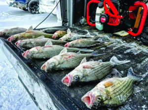 On Chautauqua Lake, the midwinter air temperature has often hovered near zero, and a stiff north or west wind drives wind chills into a negative double-digit chill factory. You know it’s cold. Ice anglers face a familiar decision: pack it in early or stay put and hope something exciting happens. Quite often, especially this year for reasons unknown, that excitement arrives in the form of feisty freshwater white bass.