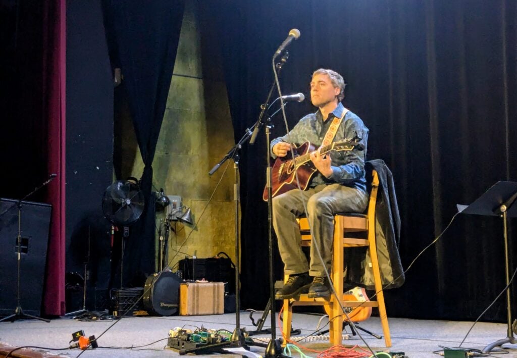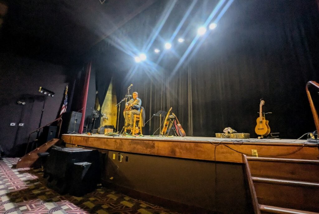 Matt Tarka plays at the Allen Theatre, with the stage set for musicians.
