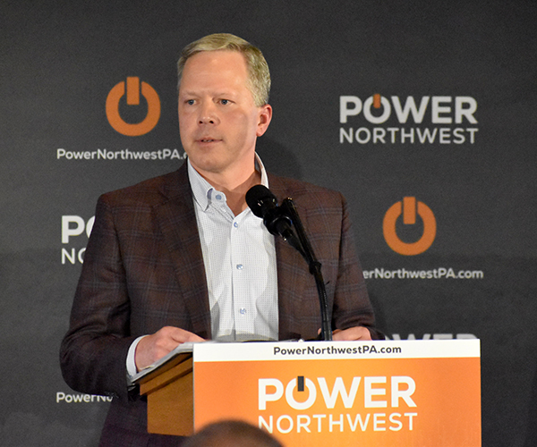 Power Northwest is composed of business leaders from across 10 counties: Erie, Butler, Beaver, Lawrence, Mercer, Venango, Warren, Clarion, Forest and Crawford. It was founded by local businessmen Frank Evans and Frank Mindicino to provide a single voice to advocate for the western Pennsylvania counties after the announcement of $92 billion in energy and technology investments at the energy and innovation summit hosted by McCormick last July.
