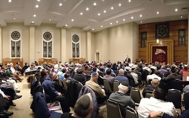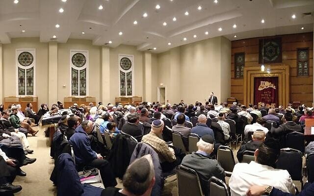 A still from a streaming video of an event at Eitz Chayim of Dogwood Park, in West Hempstead, New York, March 19, 2018. (Facebook)