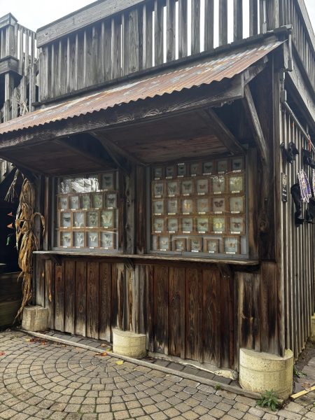 This display of framed butterflies allows visitors to see an up-close look at their unique wing patterns and stunning colors. (Bailey Clements)