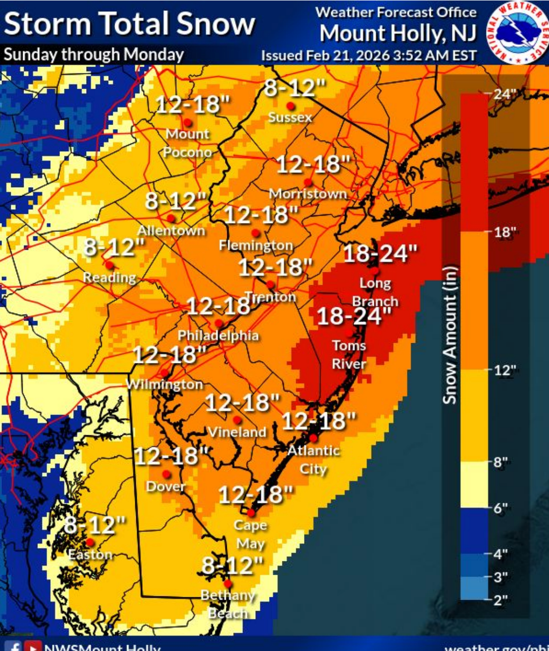 AccuWeather meteorologists predict the storm will undergo rapid strengthening offshore, producing blizzard conditions in portions of nearby New Jersey.
