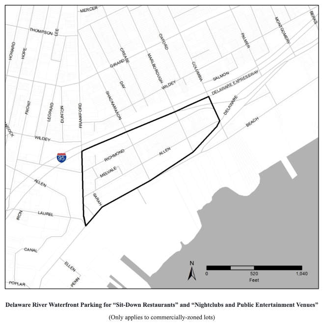 At the meeting, Vince’s needed relief for two things: a special exception for takeout food, and a parking variance. The brand-new building whose ground floor they now occupy did not build any off-street parking, as its zoning doesn’t require any. But some random Delaware River Waterfront parking rules covering the property do require parking for sit-down restaurants — one parking spot for every four occupants in this compact walkable rowhouse area.