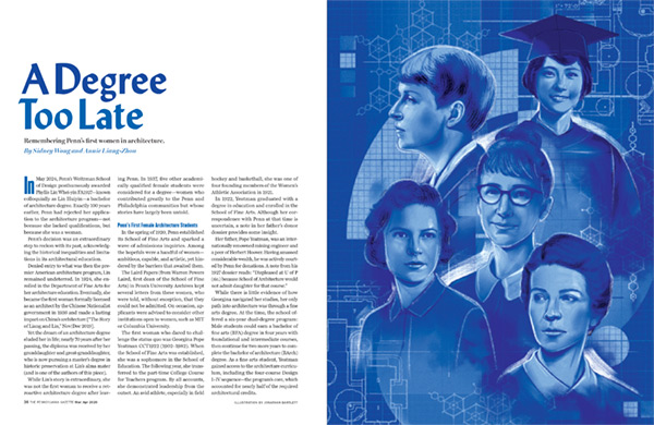 In May 2024, Penn’s Weitzman School of Design posthumously awarded Phyllis Lin Whei-yin FA1927—known colloquially as Lin Huiyin—a bachelor of architecture degree. Exactly 100 years earlier, Penn had rejected her application to the architecture program—not because she lacked qualifications, but because she was a woman.