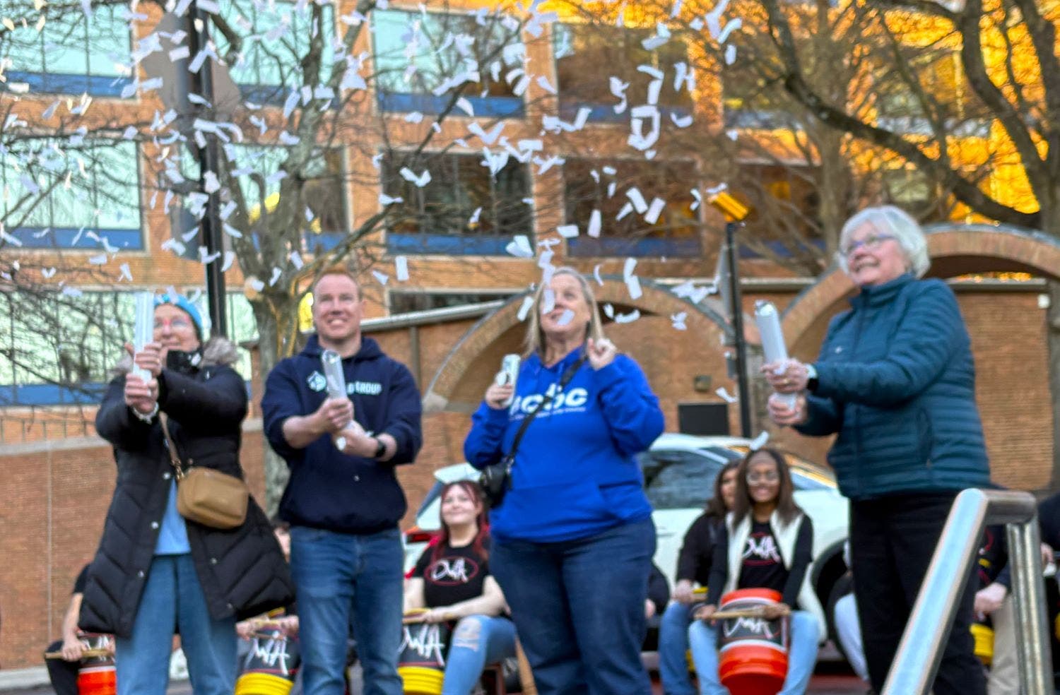 Confetti fills the air as organizers kick off the walk. (Jeff Werner/Patch)
