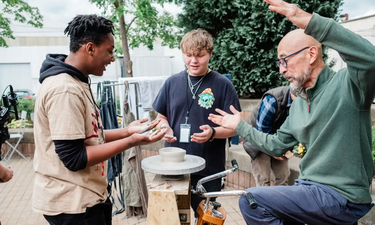 A bicycle-powered pottery wheel offers parents and grandparents a chance to pedal with their kids. (Ben Filio)