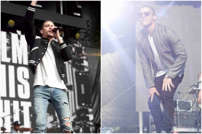 G-Eazy (left) and Nick Jonas, both at 2015 Made in America. Nick Jonas, 2015 Made in America