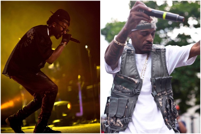 Lupe Fiasco in 2010 at the Trocadero (left). Rakim at the 2014 Odunde Festival. Rakim, 2014 Odunde Festival