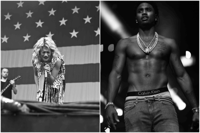 Rita Ora at 2014 Made in America (left). Trey Songz at the 2016 Powerhouse concert, Wells Fargo Center. Trey Songz, 2016 Powerhouse, Wells Fargo Center